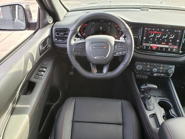 DB Black Crystal Clearcoat 2026 Dodge Durango GT Plus HEMI V8 AWD 8-Speed Automatic HEMI 5.7L V8 Multi Displacement VVT 115V Auxiliary Power Outlet, 160 Mph Primary Speedometer, 3.09 Rear Axle Ratio, 3rd row seats: split-bench, 4-Wheel Disc Brakes, 7 and 4 Pin Wiring Harness, 9 Speakers, ABS brakes, Active Noise Control System, Adaptive Cruise Control with Stop, Adaptive Damping, Air Conditioning, Alloy wheels, AM/FM radio: SiriusXM w/360L, Apple CarPlay/Android Auto, Auto High Beam Headlamp Control, Auto-Dimming Exterior Driver Mirror, Auto-dimming Rear-View mirror, Auto-leveling suspension, Automatic Headlamp Leveling System, Automatic temperature control, Black Brake Calipers, Black Roof Rails, Blacktop Package, Blind Spot with Trailer Detection, Body Color Upper and Lower Rear Fascia, Brake assist, Brembo Brakes, Bumpers: body-color, Class IV Receiver Hitch, Cloth Bucket Seats with Shift Insert, Compass, Delay-off headlights, Drive Modes - Sport/Track/Tow/Snow, Driver door bin, Driver vanity mirror, Dual front impact airbags, Dual front side impact airbags, Dual Remote USB Port - Charge Only, Electronic Limited Slip Differential Rear Axle, Electronic Stability Control, Emergency communication system: Dodge Connect, Exterior Mirrors with Heating Element, Exterior Mirrors with Memory, Exterior Mirrors with Supplemental Signals, Floor Console with Leather Armrest, Four wheel independent suspension, Front anti-roll bar, Front Bucket Seats, Front Center Armrest w/Storage, Front dual zone A/C, Front License Plate Bracket, Front reading lights, Full Speed Forward Collision Warning Plus, Fully automatic headlights, Garage door transmitter, Gloss Black Badges, Gloss Black Exterior Mirrors, Heated door mirrors, Heated front seats, Heated Second Row Seats, Heated steering wheel, High Performance Exhaust, High Performance Suspension, Illuminated entry, Integrated Roof Rail Crossbars, Knee airbag, Leather steering wheel, Leather Trimmed Bucket Seats, Leather Wrapped Door Panels, LED Auxiliary Low Beam and Turn Signal, Low tire pressure warning, MyFlexCare Service Plan, Navigation System, Occupant sensing airbag, Outside temperature display, Overhead airbag, Overhead console, Panic alarm, ParkView Rear Back-Up Camera, Passenger door bin, Passenger vanity mirror, Performance Tuned Steering, Power 6x9 Multi-Function Foldaway Mirrors, Power 8-Way Driver Memory 8-Way Passenger Seats, Power door mirrors, Power driver seat, Power Driver/Passenger 4-Way Lumbar Adjust, Power Liftgate, Power steering, Power Sunroof, Power Tilt and Telescopic Steering Column, Power windows, Quadra-Trac Active on Demand 4WD, Quick Order Package 22T GT Plus, Radio data system, Radio: Uconnect 5 Nav with 10.1" Display, Radio/Driver Seat/Mirrors Memory, Rain sensing wipers, Rear air conditioning, Rear anti-roll bar, Rear Load Leveling Suspension, Rear reading lights, Rear seat center armrest, Rear window defroster, Rear window wiper, Red Accent Stitching, Remote keyless entry, Run Flat Tires, Satin Black Dodge Tail Lamp Badge, Security system, Speed control, Speed-sensing steering, Speed-Sensitive Wipers, Split folding rear seat, Spoiler, Sport steering wheel, Steering wheel mounted audio controls, Tachometer, Telescoping steering wheel, Tilt steering wheel, Tow 'n Go Package, Traction control, Trailer Brake Control, Trip computer, Variably intermittent wipers, Ventilated Front Seats, Voltmeter, Wheels: 20" x 10" Forged Y-Spoke Satin Black, Wheels: 20" x 8" Satin Carbon Split 5-Spoke.