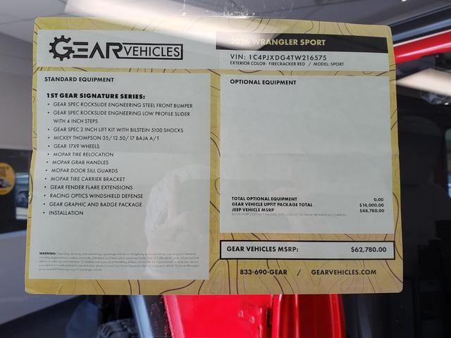 firecracker red clearcoat 2026 Jeep Wrangler Sport S 4WD 8-Speed Automatic 3.6L V6 24V VVT 12.3" Touchscreen Display, 3.45 Overall Top Gear Ratio, 4-Wheel Disc Brakes, 4G LTE Wi-Fi Hot Spot, 7 and 4 Pin Wiring Harness, 8 Speakers, ABS brakes, Advanced Brake Assist, Air Conditioning, AM/FM radio: SiriusXM with 360L, Apple CarPlay, Apple CarPlay/Android Auto, Automatic Headlamps, Aux Battery, Auxiliary Switches, Black 3-Piece Hard Top, Brake assist, Class II Receiver Hitch, Compass, Connectivity - US/Canada, Corning Gorilla Glass, Deep Tint Sunscreen Windows, Delay-off headlights, Driver door bin, Driver vanity mirror, Dual front impact airbags, Dual front side impact airbags, Electronic Stability Control, Enhanced Adaptive Cruise Control, For More Info, Call 800-643-2112, Freedom Panel Storage Bag, Front anti-roll bar, Front Bucket Seats, Front Center Armrest w/Storage, Front fog lights, Front reading lights, Full Speed Forward Collision Warning Plus, Google Android Auto, Illuminated entry, Integrated Center Stack Radio, Integrated roll-over protection, Low tire pressure warning, MOPAR All-Weather Floor Mats, Myflexcare Service Plan, No Soft Top, Non-Lock Fuel Cap Without Discriminator, Normal Duty Suspension, Occupant sensing airbag, Outside temperature display, Overhead airbag, Panic alarm, ParkView Rear Back-Up Camera, Passenger door bin, Passenger vanity mirror, Power Heated Mirrors, Power steering, Power windows, Premium Wrapped Steering Wheel, Quick Order Package 24S Sport S, Radio data system, Radio: Uconnect 5 with 12.3" Display, Rear anti-roll bar, Rear reading lights, Rear Window Defroster, Rear Window Wiper/Washer, Remote keyless entry, Security Alarm, SiriusXM Radio Service, SiriusXM with 360L, Speed control, Split folding rear seat, Steering wheel mounted audio controls, Stop-Start Dual Battery System, Sun Visors with Illuminated Vanity Mirrors, Tachometer, Telescoping steering wheel, Tilt steering wheel, Traction control, Trailer Tow and Auxiliary Switch Group, Trip computer, Variably intermittent wipers, Wheels: 17" x 7.5" Black Steel Styled, Wheels: 17" x 7.5" Gray. Price includes: $1000 - 2026 National Retail Bonus Cash . Exp. 03/31/2026